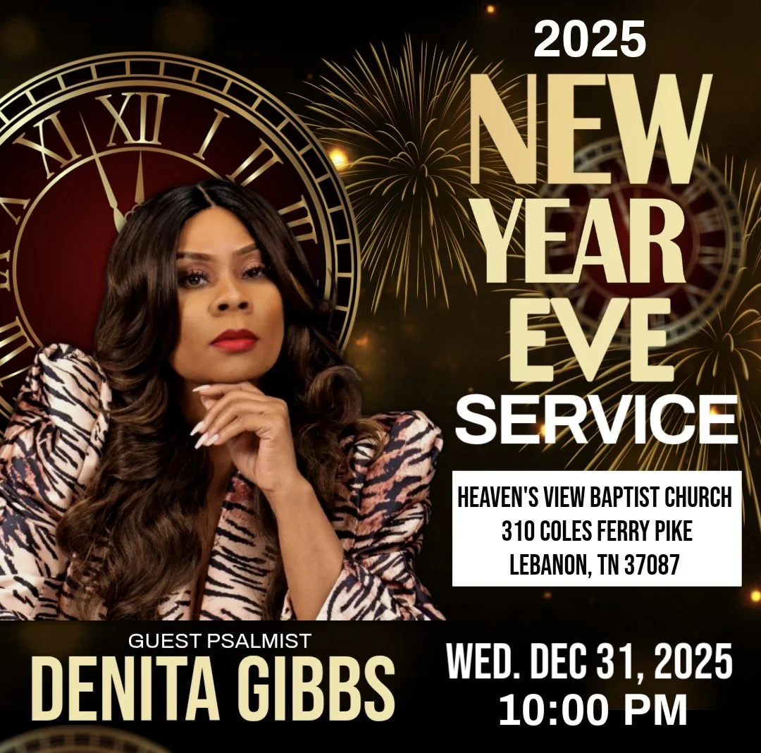 Denita Gibbs Ministries will be at the Heaven’s View Baptist Church-Lebanon, TN-12/31/25