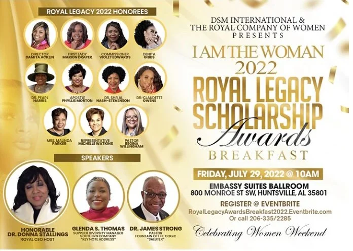 DG will be at “I AM THE WOMEN” AWARDS BREAKFAST in Huntsville, AL-7/29/22 Friday, July 29, 2022 9:00 AM 09:00 Saturday, July 30, 2022 12:00 PM 12:00 Google Calendar ICS Embassy Suites Huntsville800 Monroe StHuntsville, AL 35801